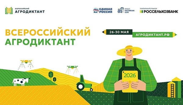 С 26 по 30 мая 2026 года во второй раз пройдет Всероссийский Агродиктант – федеральная акция по проверке знаний об агропромышленном комплексе, сельских территориях и продовольственной безопасности страны. Регистрация участников и площадок уже доступна на сайте https://агродиктант.рф.